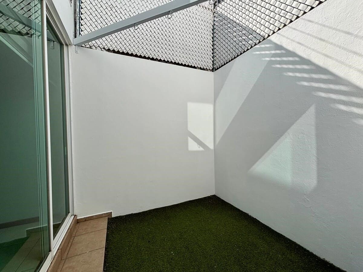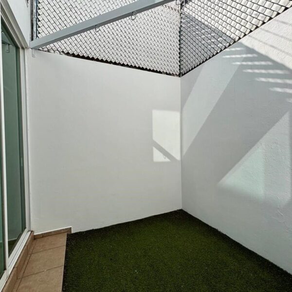 – Área de jardín de 3×3 m con pasto sintético con estructura para instalar juegos infantiles (columpios).