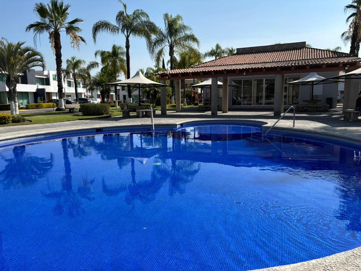 Casa en renta de 3 recámaras dentro de fraccionamiento con amenidades, excelente ubicación y mantenimiento incluido.