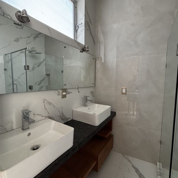 Los acabados destacan por su calidad: block sólido, techos de 2.70 m, iluminación LED, carpintería en encino americano, canceles de cristal templado, ventanas de aluminio con mosquiteros, cocina con cubierta de granito y preparación para aire acondicionado y autos eléctricos.