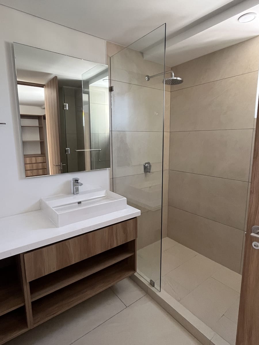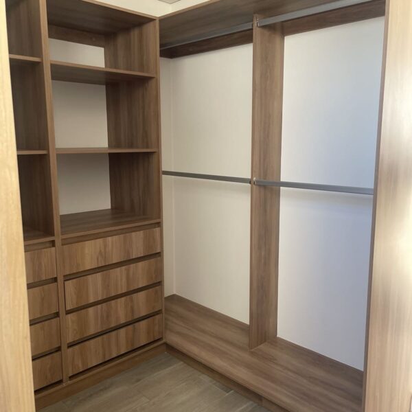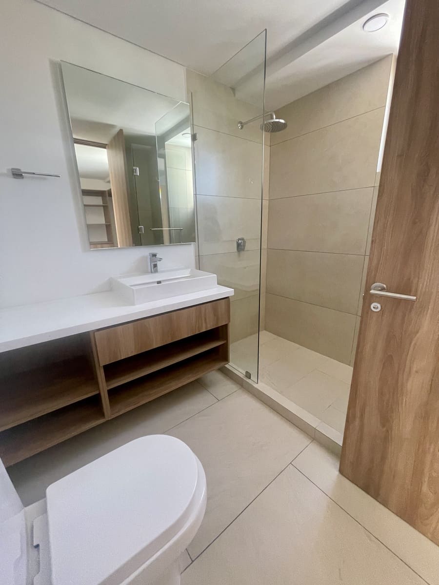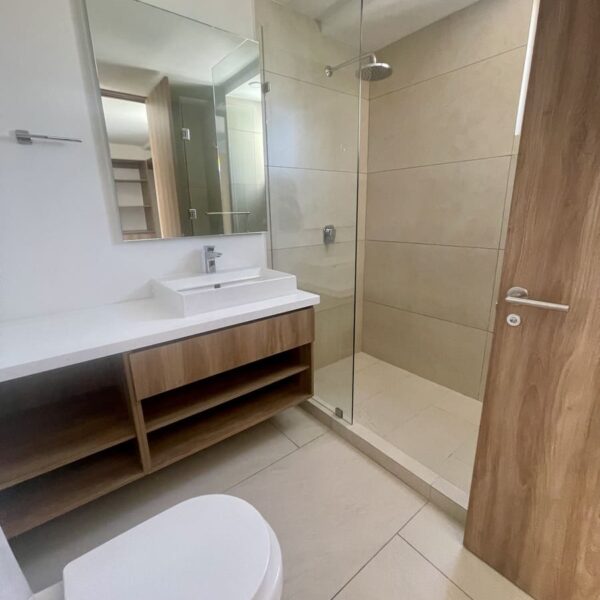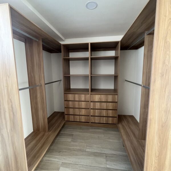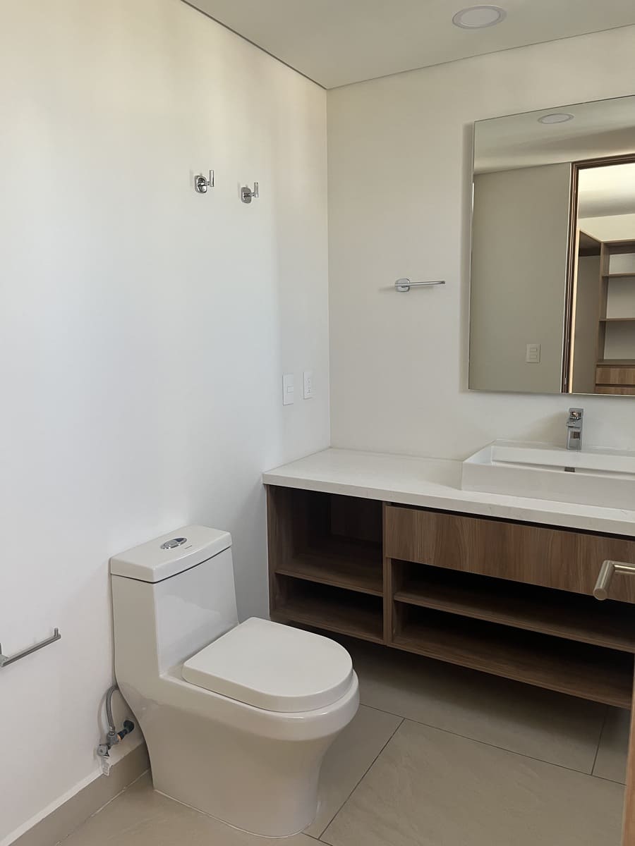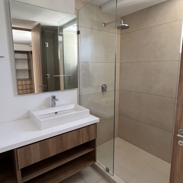Tiene 2 Recámaras, la principal con walk in closet y baño , la recámara secundaria con un clóset grande y mueble de TV incluido.
