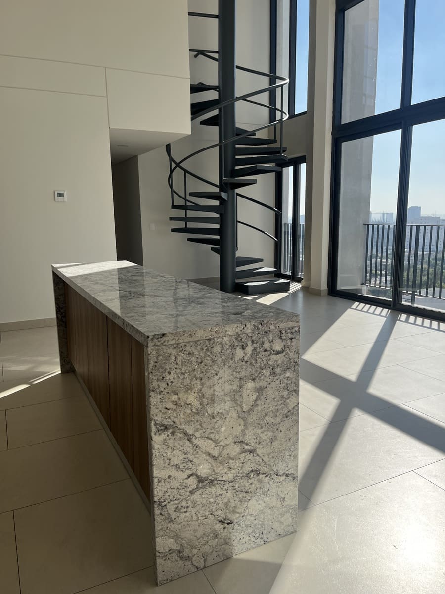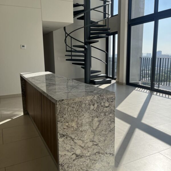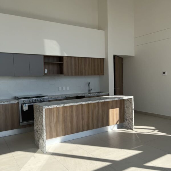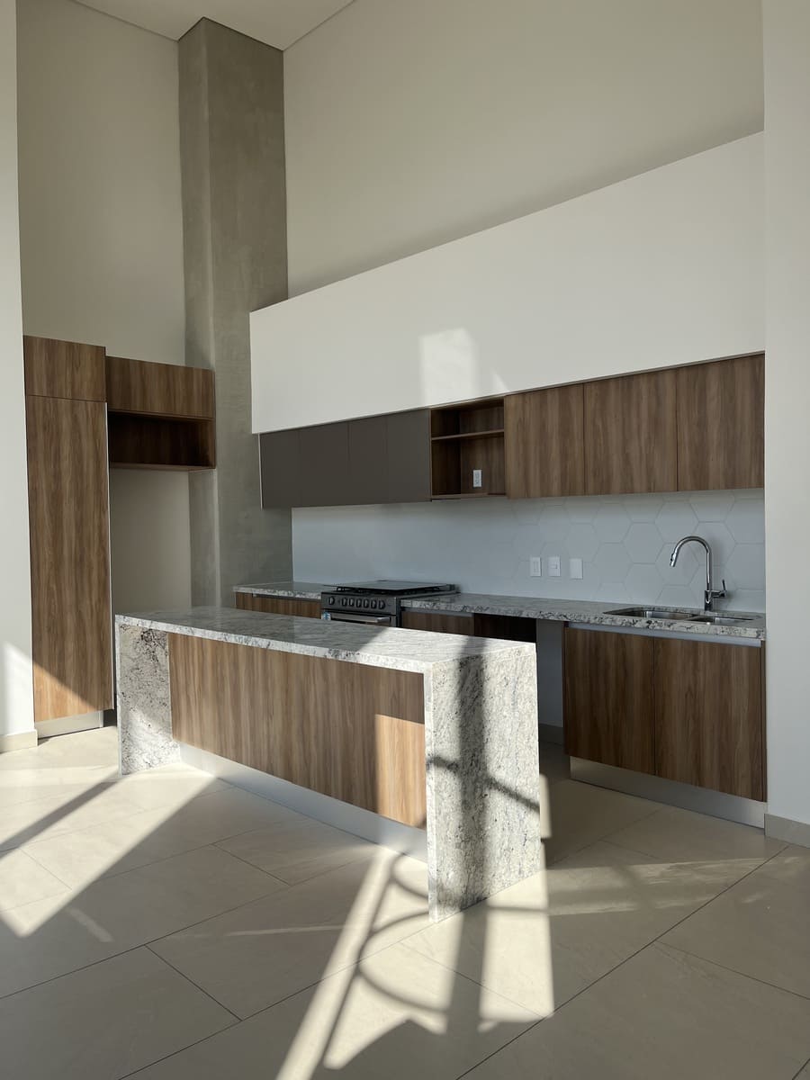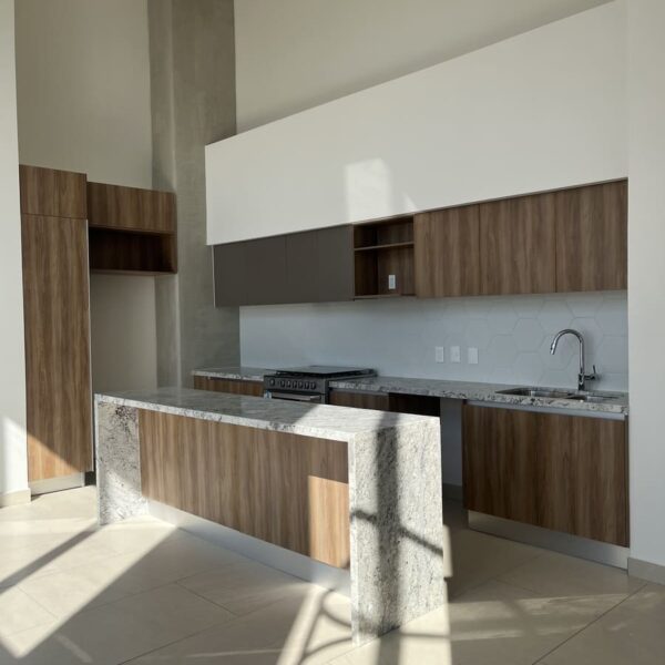 Cuenta con 2 niveles, en planta baja tiene una cocina muy amplia con una gran barra de granito y mucho espacio para guardar .