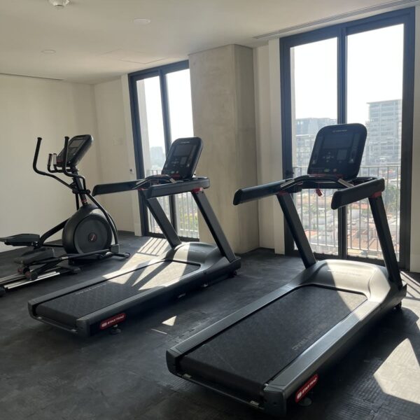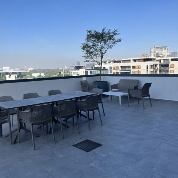 Entre las amenidades están un gimnasio, un área de coworking y una gran terraza equipada para pasar el rato