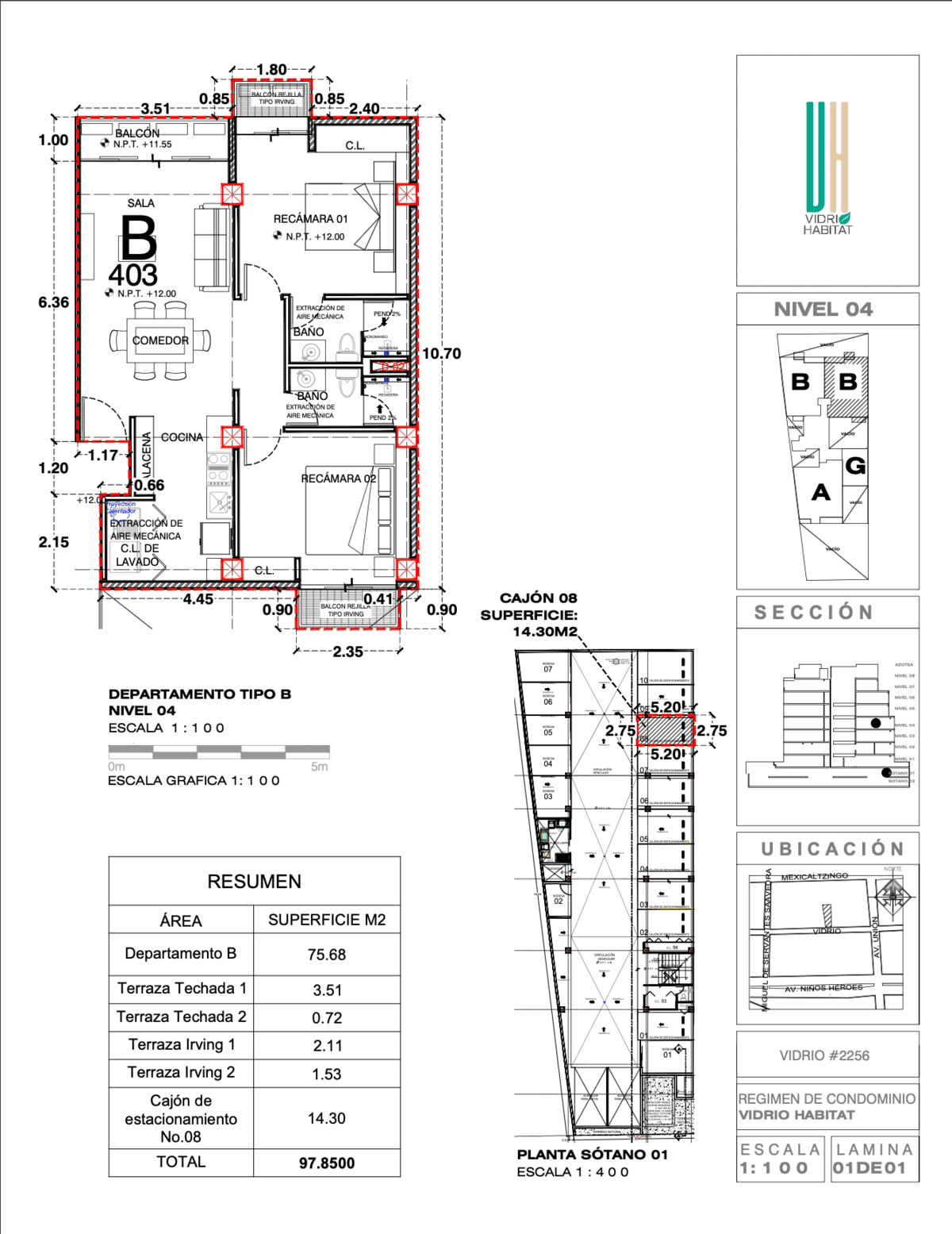 – Portón eléctrico en la fachada, elevador para vehículos y dos sótanos de estacionamiento