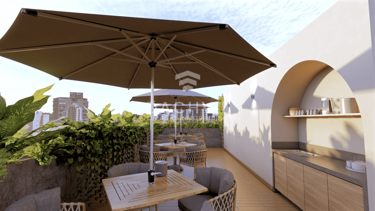 El departamento es de 83.55 metros cuadrados, de los cuales 75.68 son privativos, quedando una increíble terraza de 7.87 metros.
