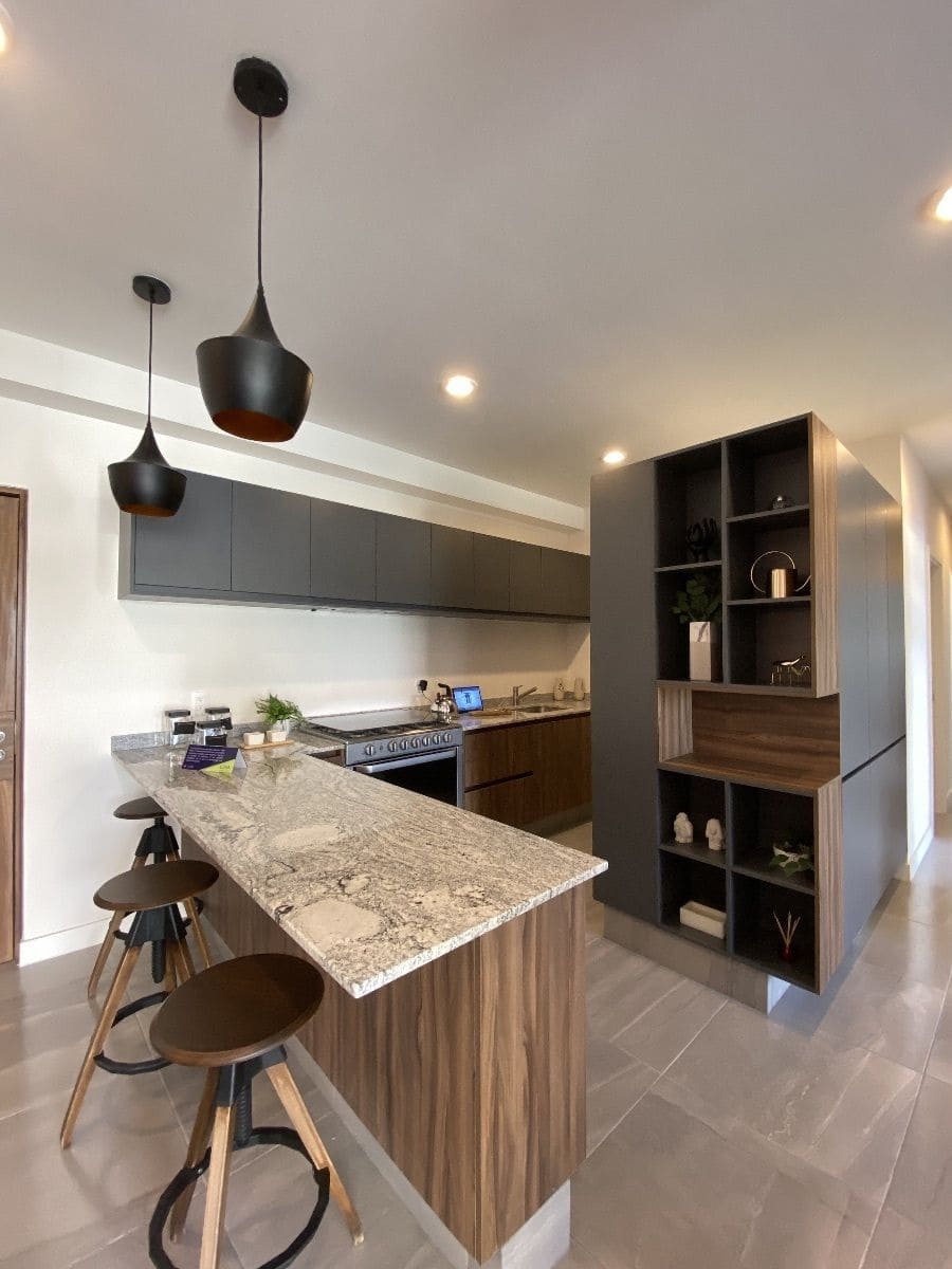 • Cocina con Barra: Diseño moderno que combina funcionalidad y estilo.