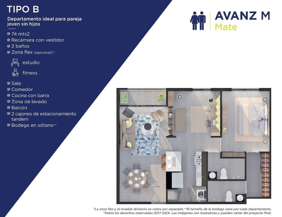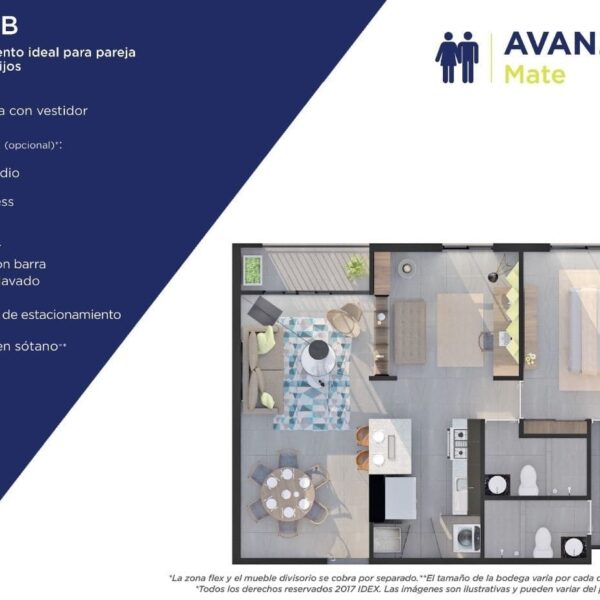 • Estudio Flex: Espacio versátil que puede adaptarse a tus necesidades, ya sea como oficina en casa, sala de entretenimiento o área de estudio.