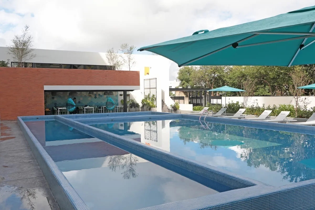 • Alberca con Carril de Nado: Relájate o ejercítate en una alberca diseñada para disfrutar del agua todo el año.