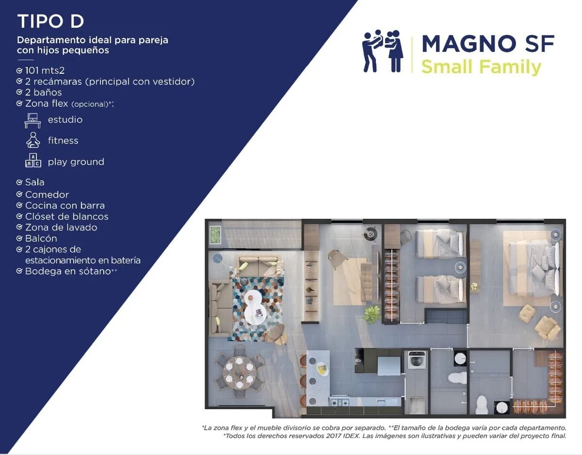 • Estudio Flex: Un espacio versátil que se adapta a tus necesidades, ya sea como oficina en casa, área de entretenimiento o estudio.