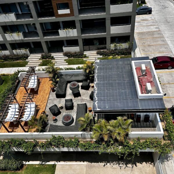 El desarrollo cuenta con alberca, asoladores, salón de eventos, gimnasio, áreas verdes y terraza común.