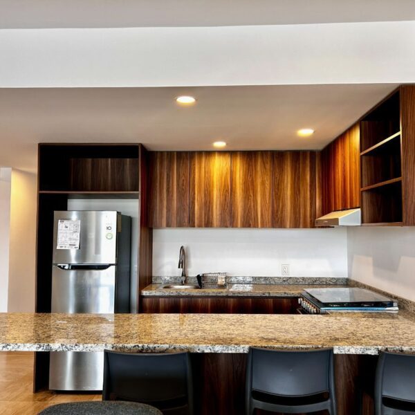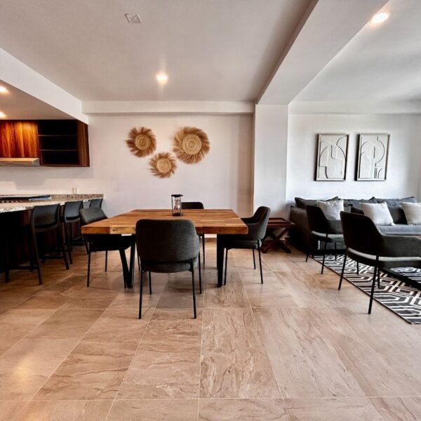 En el caso de renta, es completamente amueblado e incluye mantenimiento.
