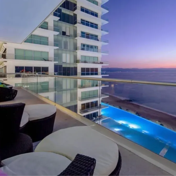 La unidad está ubicada en la torre 1, la cual cuenta con amenidades gimnasio, spa para hombres y mujeres, cine, biblioteca, centro de negocios, jacuzzi y alberca techada. El desarrollo cuenta con una de las piscinas más largas de Vallarta, cuenta también con palapas en la playa las cuales son exclusivas para los residentes.