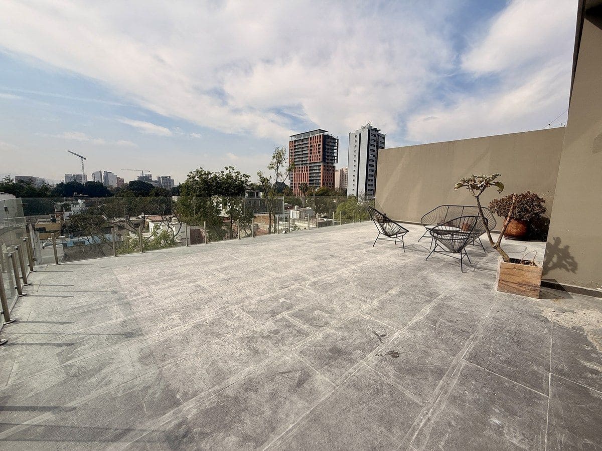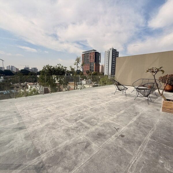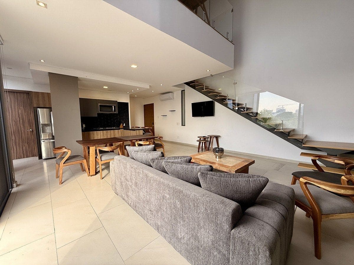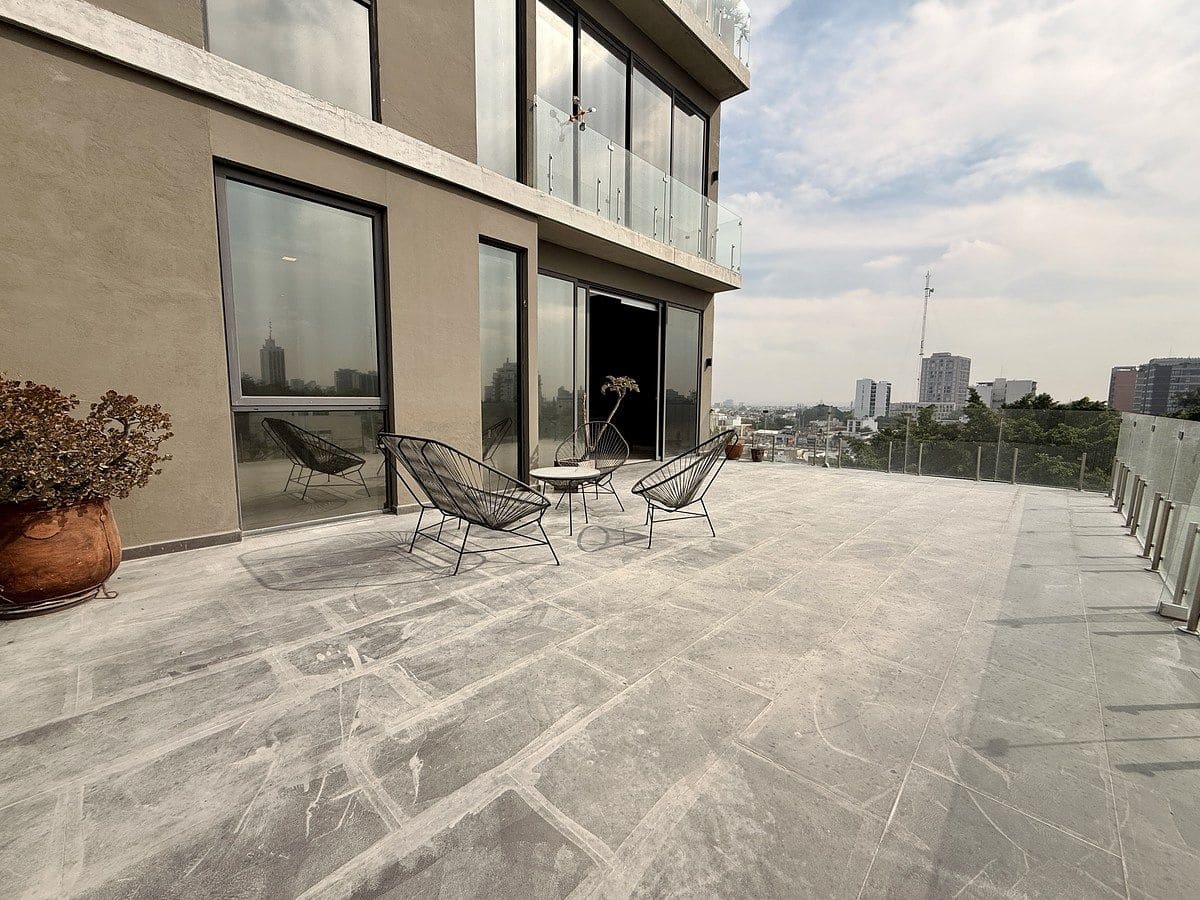 Excelente departamento en venta, con increíble terraza y sala a doble altura en el Condominio Ameritannia, sobre la colonia Ladrón de Guevara.