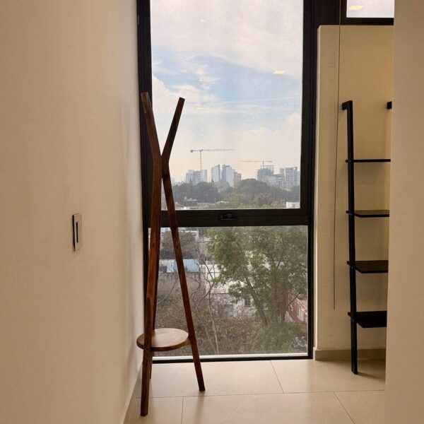 El estacionamiento es para dos autos y la torre tiene roof top con alberca, terraza, gimnasio y salón de usos múltiples.
