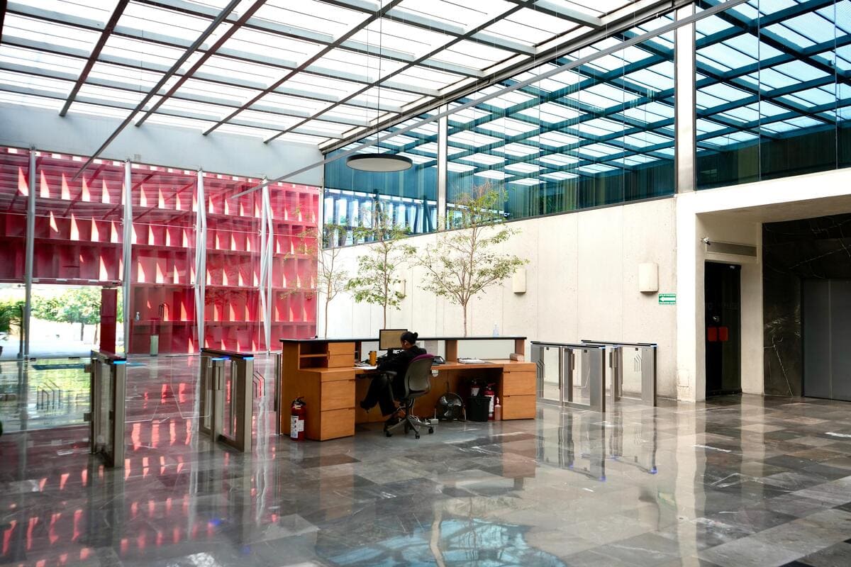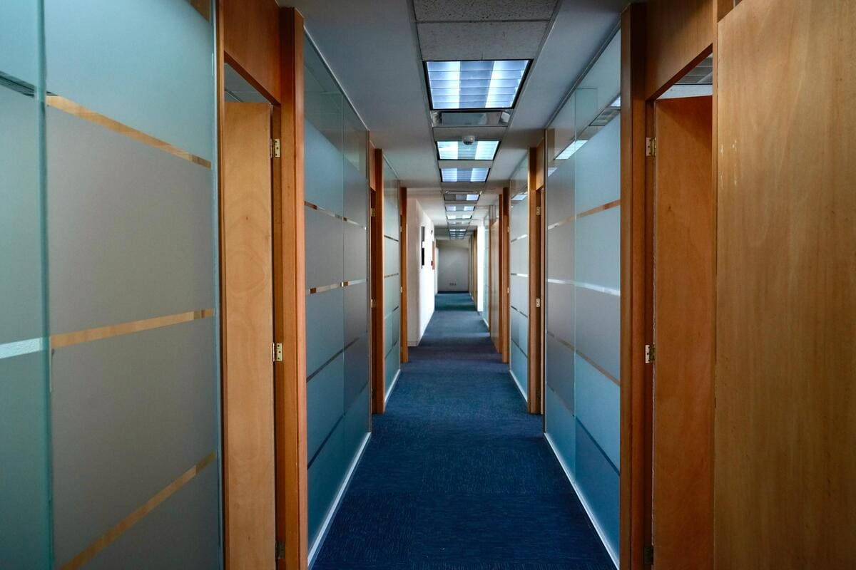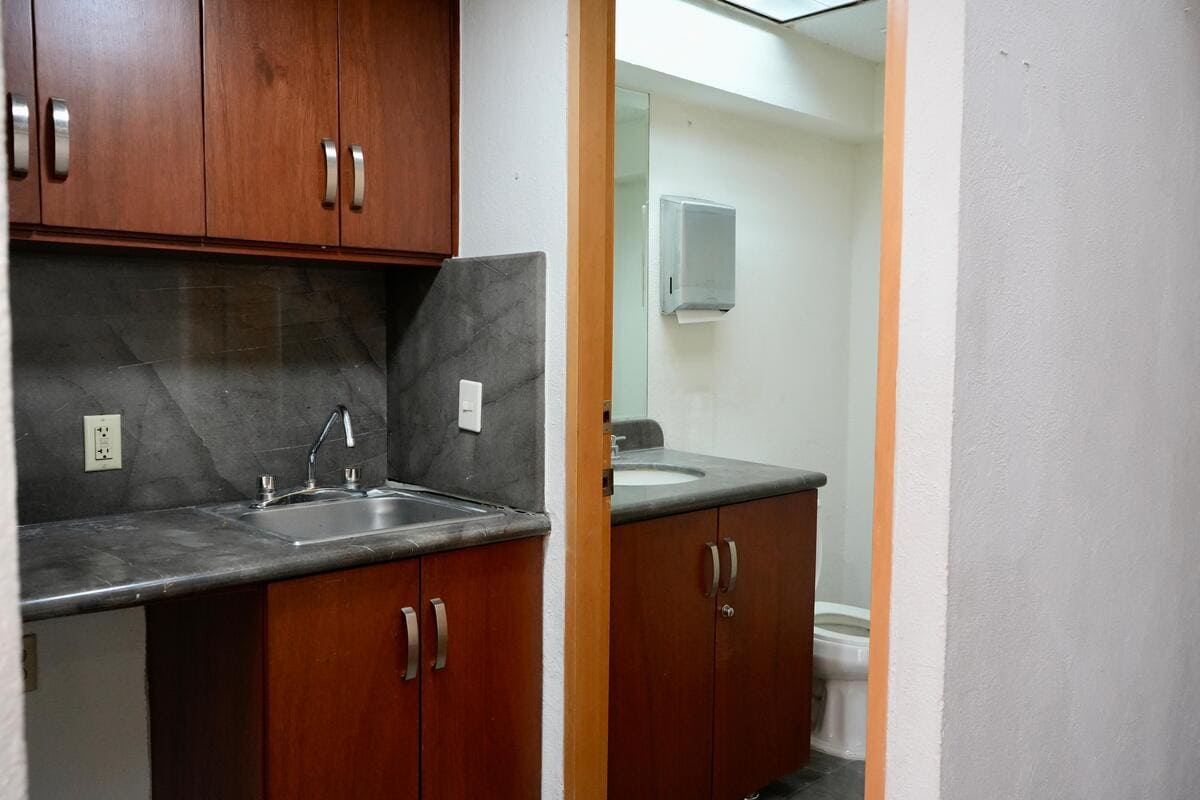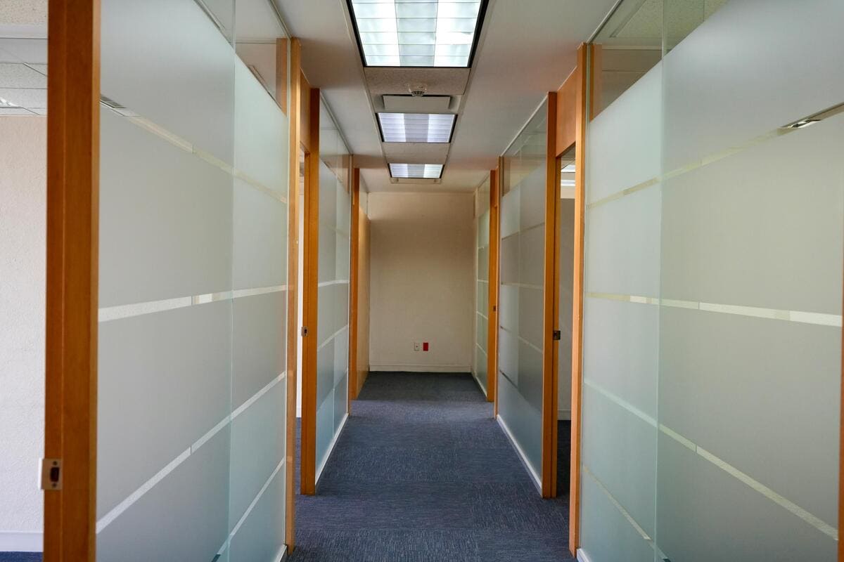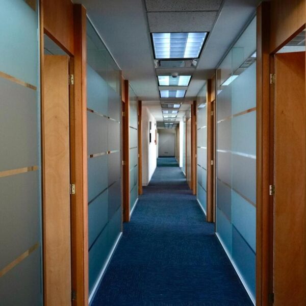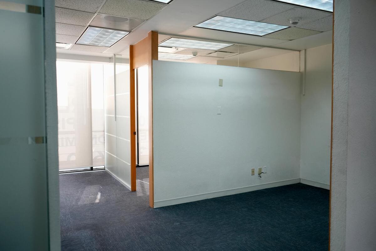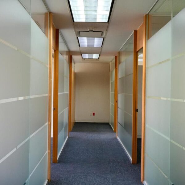 Se encuentra dividida en 15 áreas privativas, sala de juntas, dos medios baños y tres espacios multi funcionales.