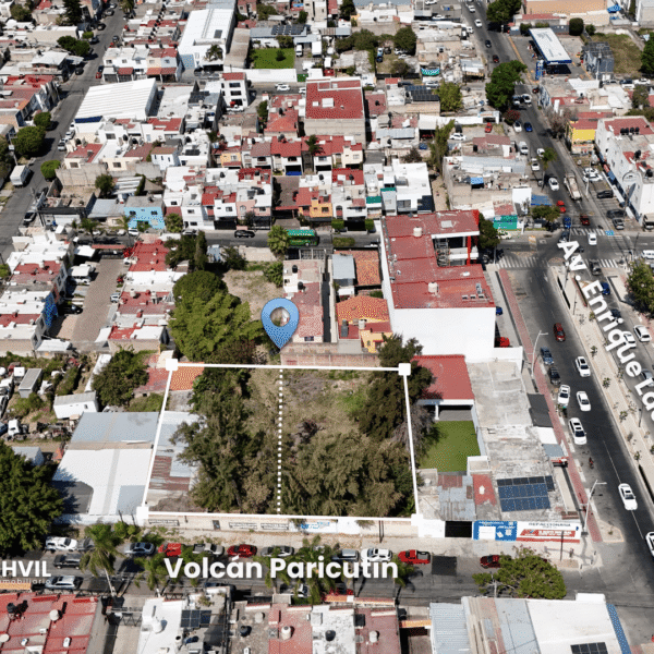 El terreno cuenta con 40.4 metros por la calle Volcán de Paricutín, por lo que lo hace ideal para un sin fin de proyectos y posibilidades de desarrollar.