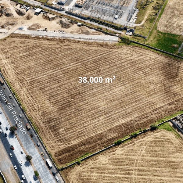 Excelente terreno plano con más de 220 m de frente sobre Av. Juan Gil Preciado.