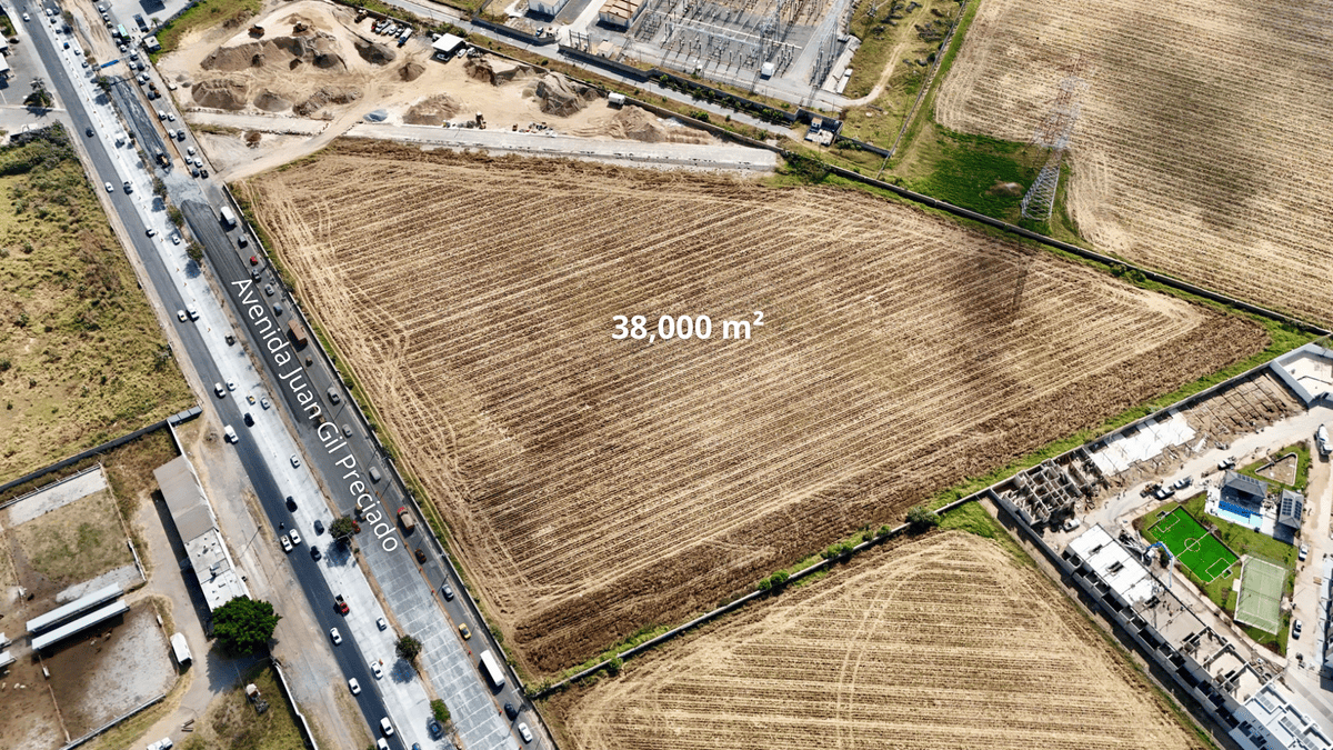 Excelente terreno plano con más de 220 metros de frente a avenida Juan Gil Preciado.